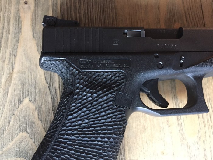 Supernova This texture is both visually stunning and very functional. Its deadly radiance starts from a single point on the back strap and explodes outward around the frame, providing great grip surface for your entire hand at every point of contact. Share this: Click to share on X (Opens in new window) X Click to share on Facebook (Opens in new window) Facebook Like Loading...
